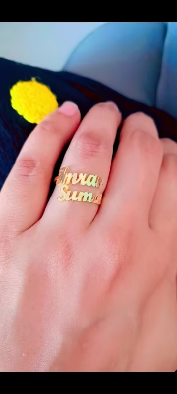 Este anel personalizado é uma maravilha! Adoro poder usar os nomes dos meus entes queridos enquanto tenho uma joia elegante e única. O design é moderno e refinado!
